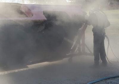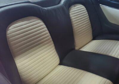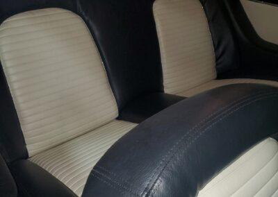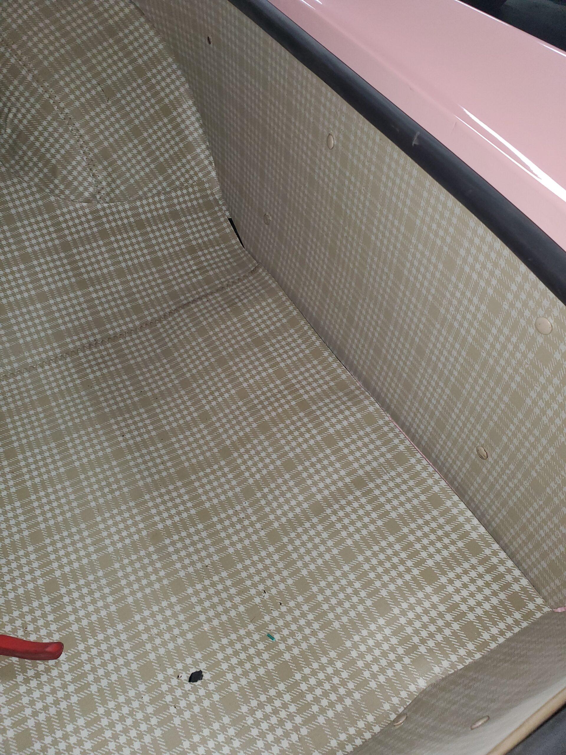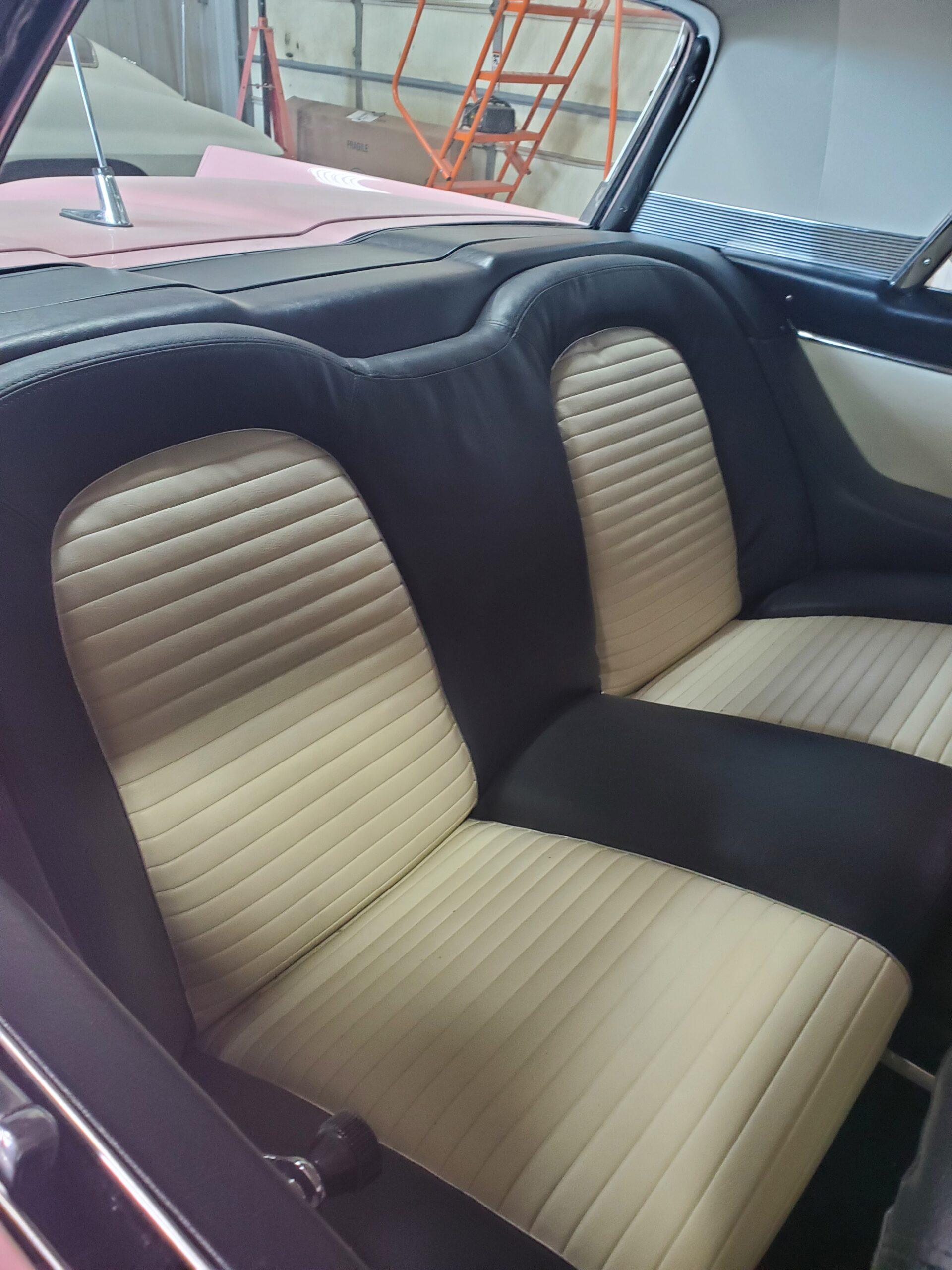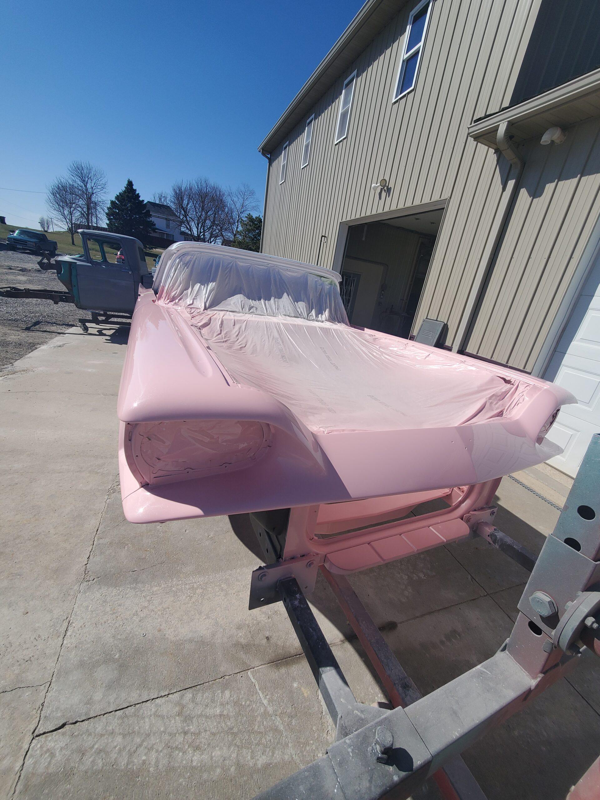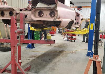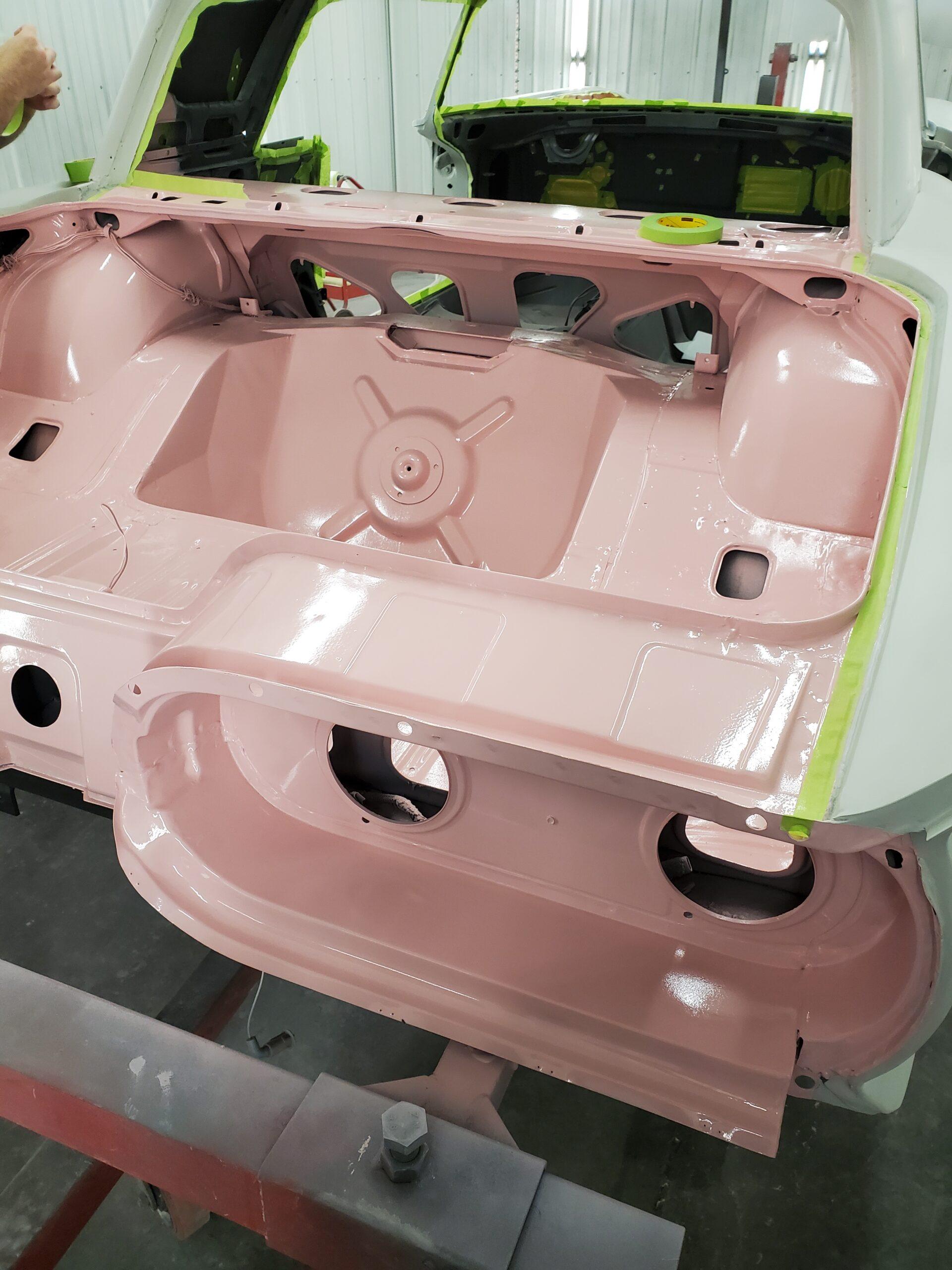 For the next 11 months, the car was completely disassembled, sorted, cataloged, mounted to the rotisserie, and then media blasted. That’s when the Fabrication Department took over. Because not all of the replacement sheet metal panels were available, many of the repair areas were handcrafted in-house here at Dig’s. After the metal work was complete it continued to the Body and Paint department where it received its original paint color combination: Cameo Rose and White, with a subtle, custom touch of White Pearl, with a hand-painted Betty Boop to give it that unique effect. Once all components were painted, it was moved to the Reassembly area, where all the pieces were inspected, cleaned, and polished. This car received a new reproduction interior kit, wiring harness, glass, weather stripping, aftermarket Vintage Air A/C system, full exhaust, new tires, rechromed bumpers, among many other upgrades.